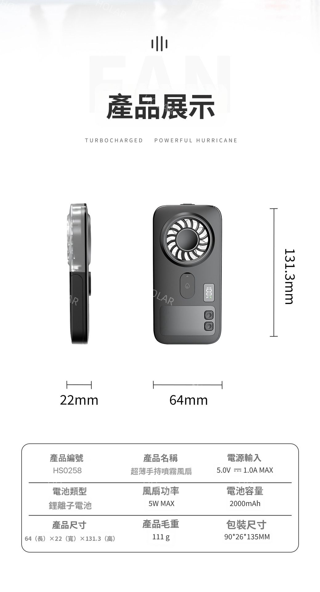 HOLAR JAPAN 便攜式手持噴霧風扇 戶外加濕補水迷你風扇 HS0258