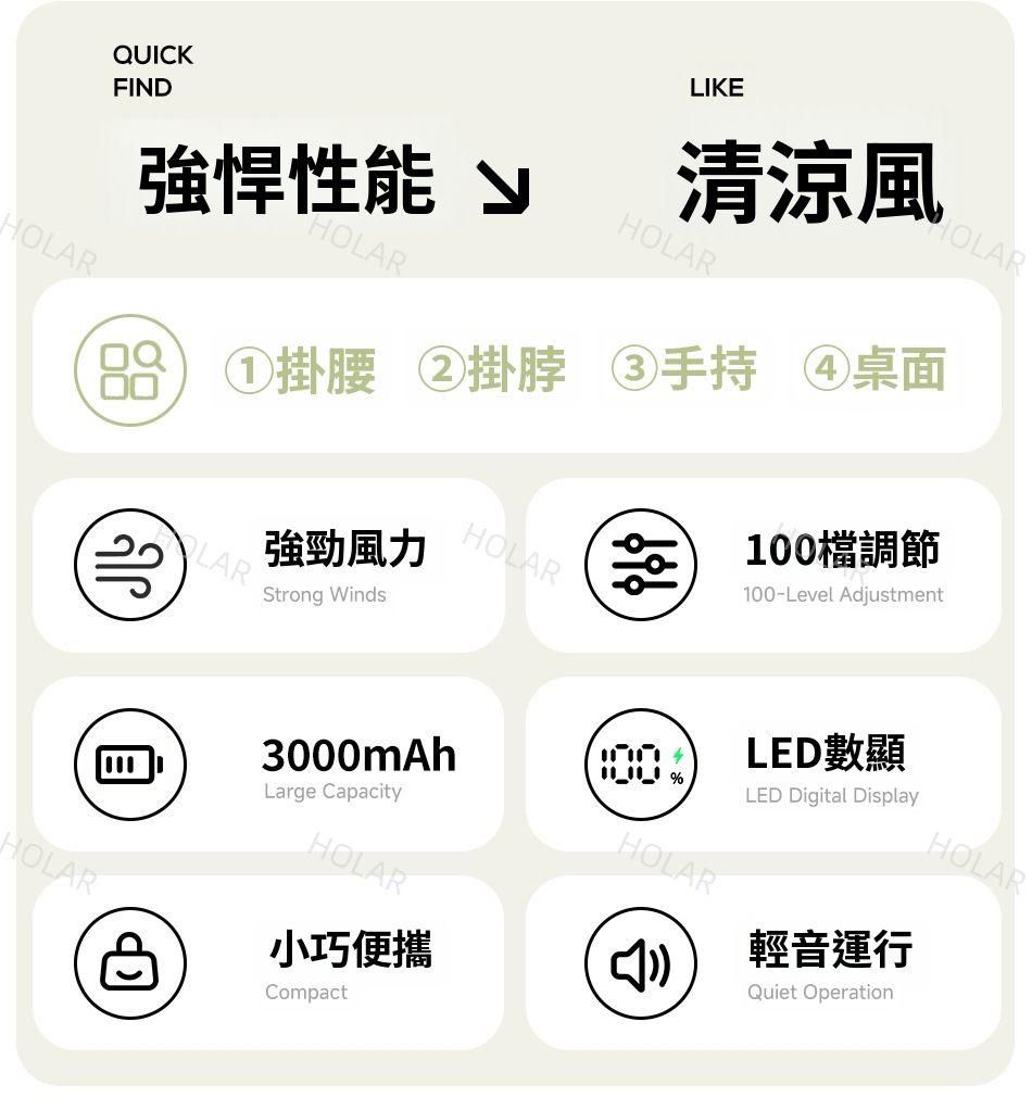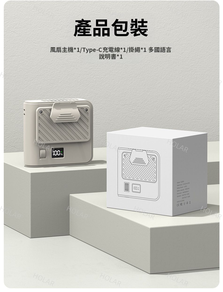 HOLAR JAPAN 掛腰小風扇 戶外工地100大風力數位手持便攜掛脖小風扇 HS0257