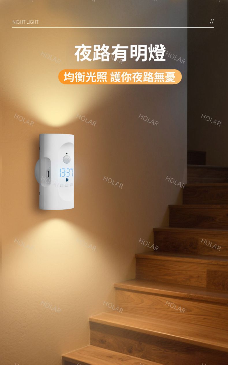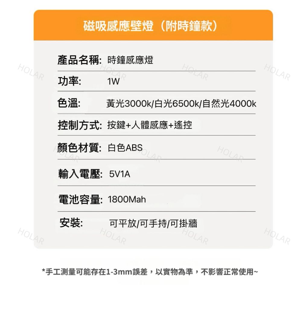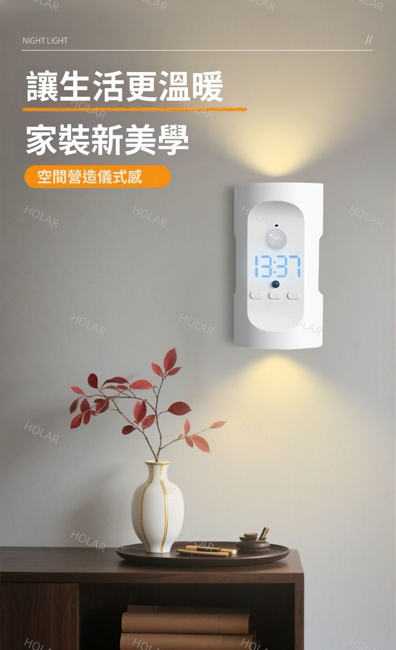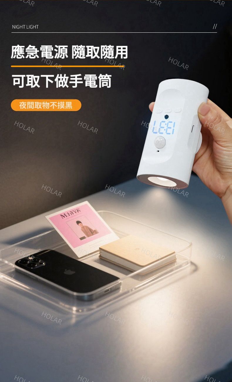 HOLAR JAPAN 智能人體時鐘感應燈 磁吸LED充電氣氛燈 遙控時鐘床頭小夜燈 壁燈 背景射燈 墻燈 HS0246