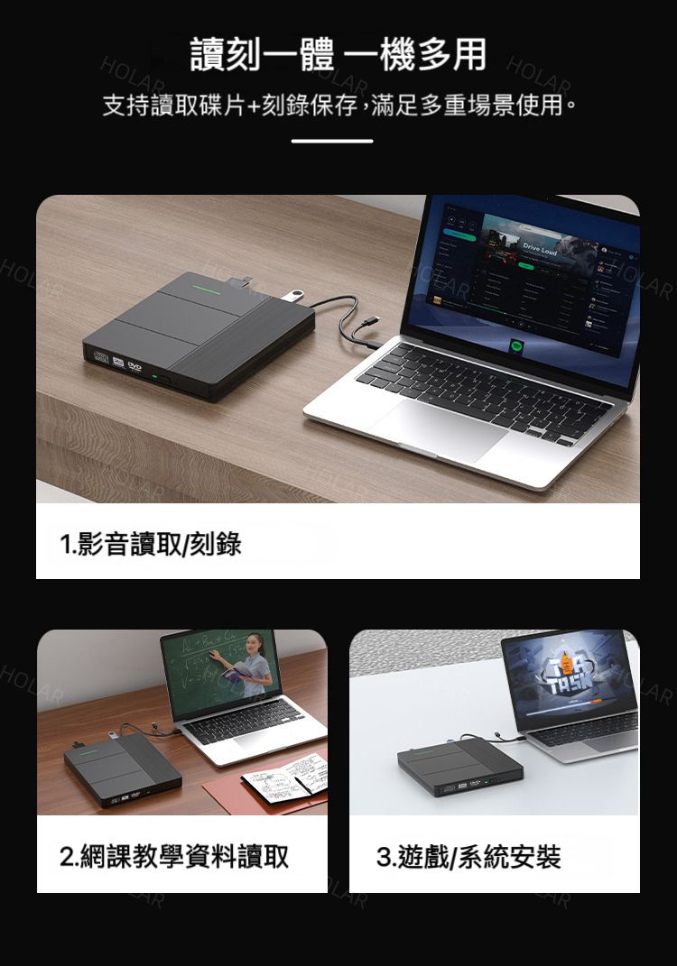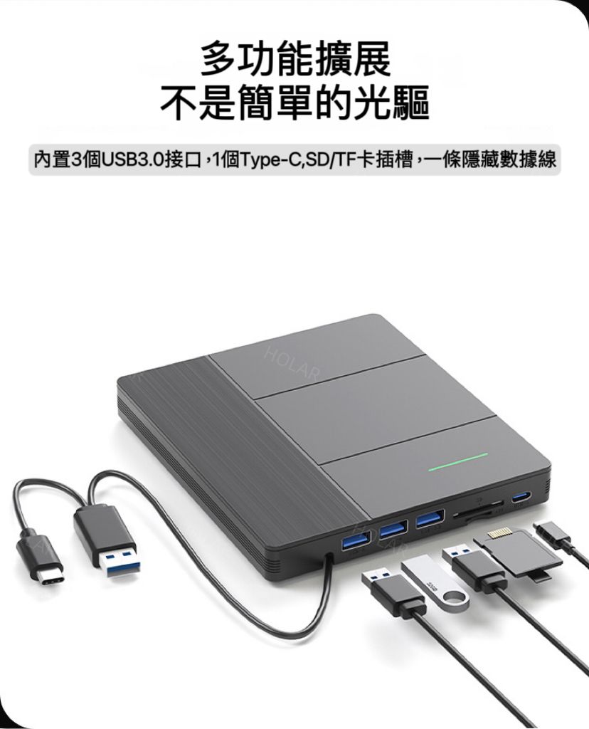 HOLAR JAPAN 超高速多功能USB3.0外置光碟機便攜DVD/CD刻錄機 外接移動光驅 讀碟機 燒錄機 多功能Type-c SD/TF HS0248